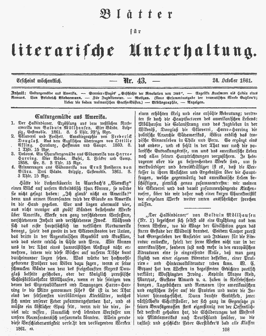 NN: Der Halbindianer. in: Blätter für literarische Unterhaltung. 1861. Nr.43.